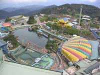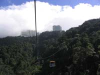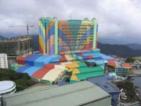 9 Uhr Abfahrt in die Genting Highlands, das "Las Vegas von Malaysia". Die GH befinden sich etwa eine Autostunde entfernt von KL in einer Höhe von knapp 1800m. Erst Anfang der 70er Jahre wurde dieses Bergland durch eine serpentinenreiche Straße erschlossen. Da das erste Hotel auf dem Gipfel die einzige Lizenz für ein Spielkasino in Malaysia erhielt, ist es bei den Chinesen aus dem nahen KL und sogar Singapur zu einem beliebten Spielerparadies geworden. Malaien ist es verboten an Glücksspielen teilzunehmen, deshalb findet man hier auch fast nur Chinesen. Wir sind mit dem Bus bis zur Station einer Gondelbahn gefahren. Es führt zwar eine Straße bis zum Gipfel, aber die Busse fahren nur bis zur Seilbahn. Die Fahrt damit lohnt sich aber. Man hat einen tollen Überblick über die waldbestandene Bergkette. Oben wird man von der Massivität der 3-, 4- und 5 Sterne-Hotelbauten fast erschlagen. Das ganze Szenario wirkt architektonisch wenig behutsam. In einem der Hotels befindet sich ein riesiges Spielcasino. Man kann sein Geld allerdings auch in einem Vergnügungspark mit Achterbahn, Freefall Tower, usw. ausgeben. Neben diesen zwei Hauptattraktionen gibt es noch viele andere Möglichkeiten die Zeit tot zuschlagen. Um etwas europäisches Winterfeeling zu erleben sind wir ins "Snow World" gegangen. Das "Snow World" ist eine auf -2°C gekühlte Halle, in der künstlich eine Winterlandschaft erzeugt wurde. Für die einheimischen Chinesen eine Möglichkeit das erste Mal in ihrem Leben Schnee zu erleben.