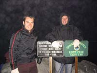 Nach einer kurzen Nacht hieß es um 2.45 Uhr aufstehen. Um 3.30 Uhr sind wir Richtung Gipfel gestartet. Mit Taschenlampen ausgerüstet brauchten wir 2:30 Std. für den gut 2km langen Aufstieg auf den 4095,2m hohen Gipfel des Mount Kinabalu. Auf dem letzten Streckenabschnitt sind über die glatten Granitfeld dicke Halteseile gespannt. Um 6 Uhr ging die Sonne auf. Leider war es etwas bewölkt, so dass wir den Sonnenaufgang nicht sehen konnten. Wir haben uns nur ca. 20 min auf dem Gipfel aufgehalten. Die Temperatur lag bei ca. 5 Grad und wir waren nur mit zwei Pullis ausgerüstet. Als es hell wurde, hatte man einen grandiosen Blick über die Umgebung.