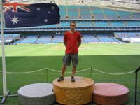 Die erste Aktion an diesem Tag war die Änderung meiner Flugdaten. Da ich die ganze Tour ja zwei Wochen früher begonnen habe, musste ich die restlichen Termine auch noch ändern. Anschließend bin ich mit dem Zug zum Olympiapark gefahren. Ohne eine Führung zu kaufen, darf man das Olympiastadion natürlich nicht betreten. Man bekommt dann allerdings auch die Umkleide-, VIP-, Kommentator-, und sonstige Räume gezeigt. Danach bin ich ins Schwimmstadion. Es fand sogar gerade ein Schwimmwettbewerb statt. Als ich wieder in der Stadt angekommen bin, habe ich den Darling Hafen besichtigt. Einen Besuch des "Maritime Museum" habe ich mir ebenso gegönnt wie den des Sydney Aquariums, in dem man vom Hai über das Krokodil bis zu Nemo alles sieht, was sich im Wasser bewegt.