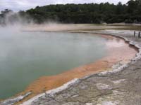 Heute stand eine entfernungsmäßig kurze Etappe nach Taupo auf dem Programm. Der Morgen begann mit einem Spaziergang durch einen Wald (nicht so aufregend). Das ganze Gebiet zwischen Rotura und Taupo wurde von Vulkanen geformt und ist auch heute noch geothermisch sehr aktiv. An vielen Stellen sind heiße Quellen zu sehen. Die Fahrt ging weiter zu blubbernden Schlammseen, kochenden Vulkanseen und sprühenden Geysiren. Im Anschluss haben wir eine Stunde in einem kleinen Vergnügungspark verbracht, bevor wir kurz vor Taupo noch einen Wasserfall besichtigt haben. Am Abend sind wir in ein Pub. Meine Mitreisenden sind aus den Ländern Kanada, Irland, England, Schweden und Schweiz. Es macht Spaß so viele neue Leute kennen zu lernen.