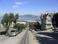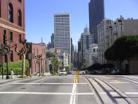 Nach dem Frühstück habe ich mich nach Tickets für Alcatraz umgeschaut. Der Sonntag war schon ausgebucht, deshalb beschloss ich einen Tag länger in SF zu bleiben und habe Tickets für Montag gekauft. Anschließend bin ich mit dem Cable Car ins Zentrum gefahren. Die Fahrt ist ein echtes Erlebnis. Ein ständiges auf und ab. Die Straßen sind wirklich steiler als ich es gedacht habe. Am Union Square angekommen, habe ich mit Stadtplan bewaffnet einen Orientierungslauf durchgeführt. Wieder zurück am Ausgangspunkt bummelte ich angesichts der relativ preiswerten Klamotten etwas durch die Geschäfte. Ich konnte mich tatsächlich überwinden zwei Paar Jeans zu kaufen. In einem Internetcafe habe ich noch die Homepage aktualisiert und dann war es schon wieder dunkel. Sobald die Sonne weg ist wird es hier richtig kalt. Ich konnte auf einen gerade